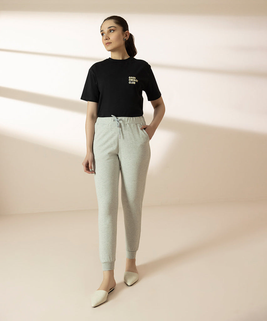 Slim-fit jogging trousers in cotton terry fabric. Ribbed waistband with drawcord. Side pockets and ribbed cuffs.