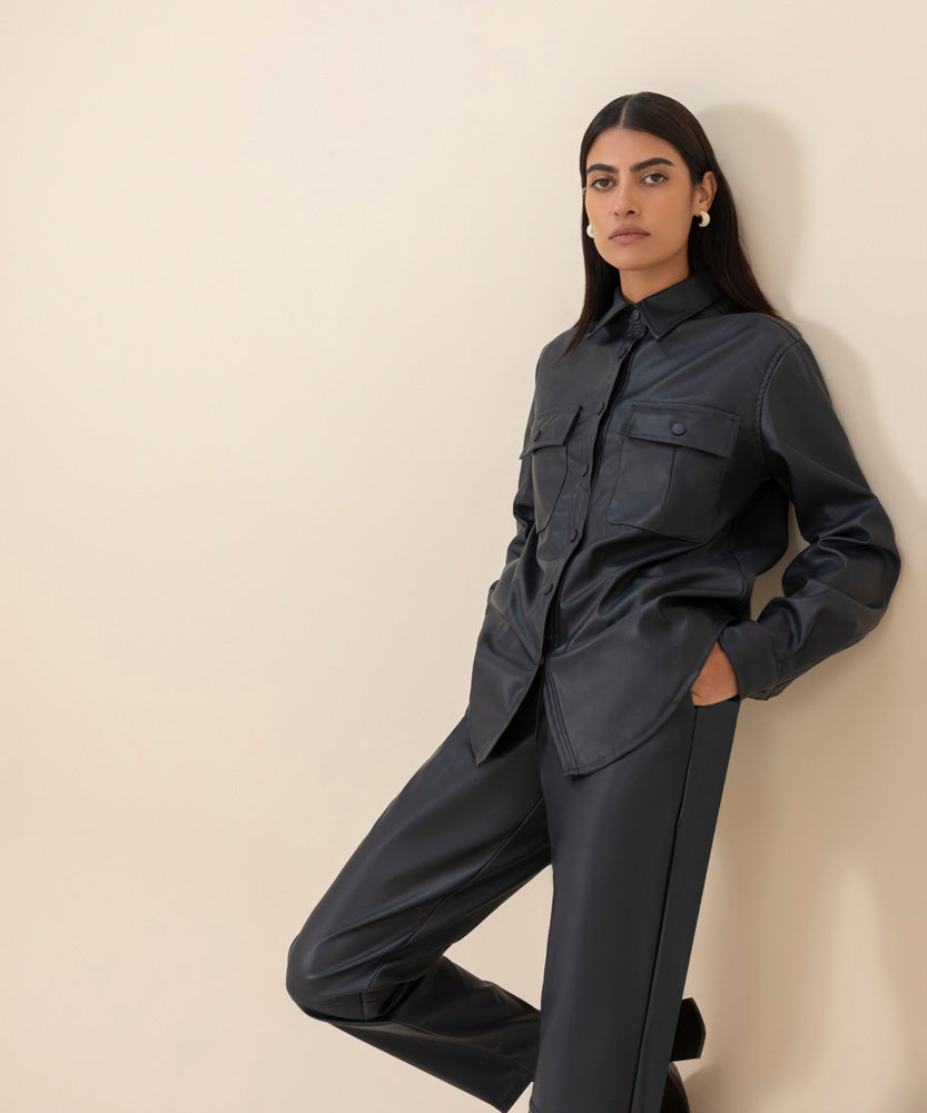 Faux Leather Pull-On Trousers