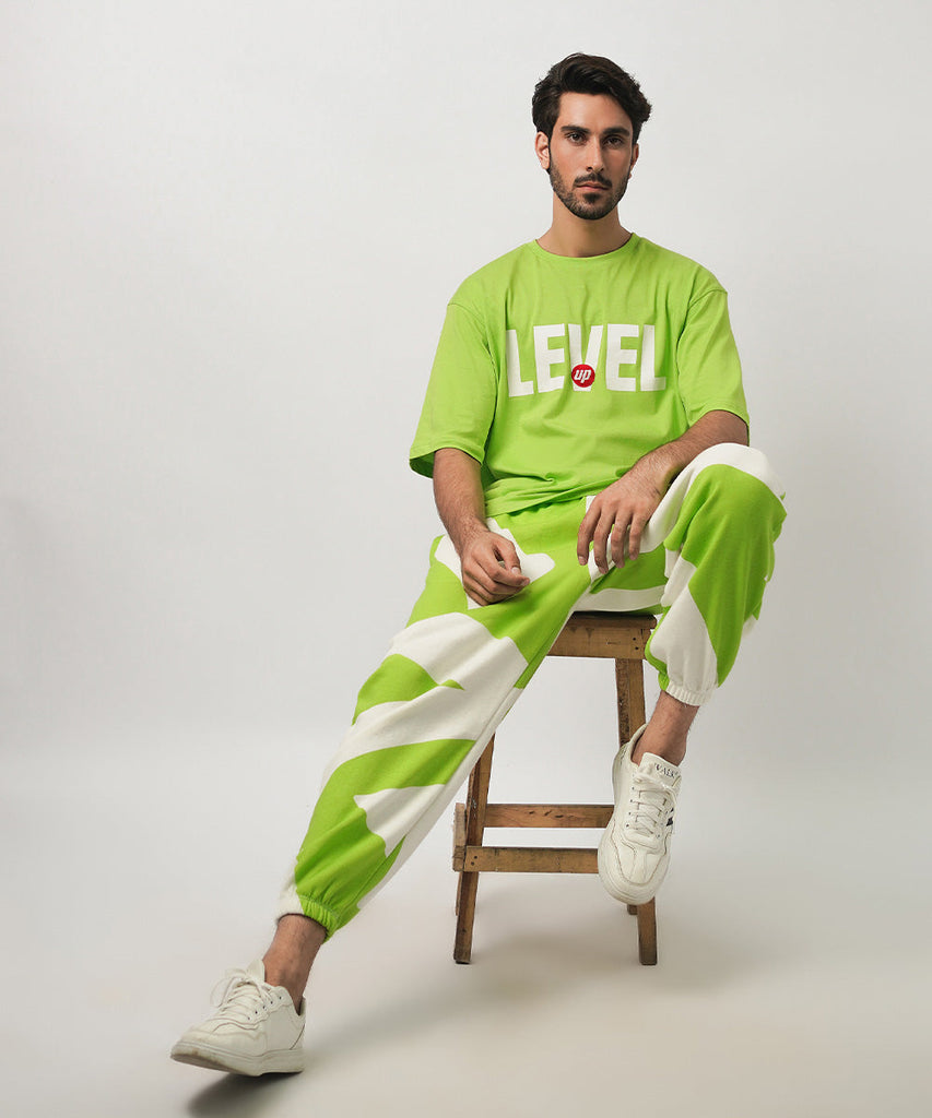 Printed loose-fit jogging trousers with elasticated waist and draw-cords. Side pockets. Cuffed hem. Back patch pocket...