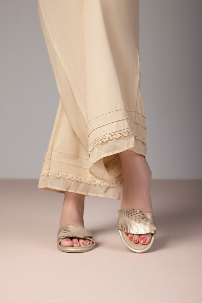 Mix and match your kurtas with this neatly curated cotton culottes in beige featuring accented hem.