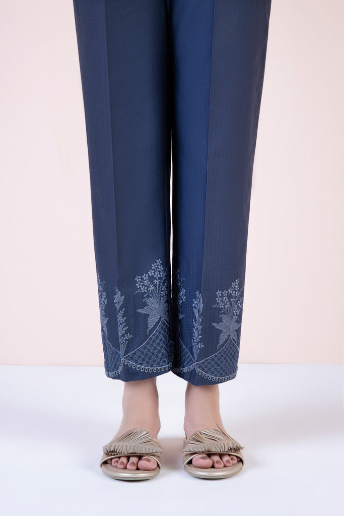 Cigarette Pants Add a dainty touch to your wardrobe in these ready to wear embroidered blue textured cotton trousers....
