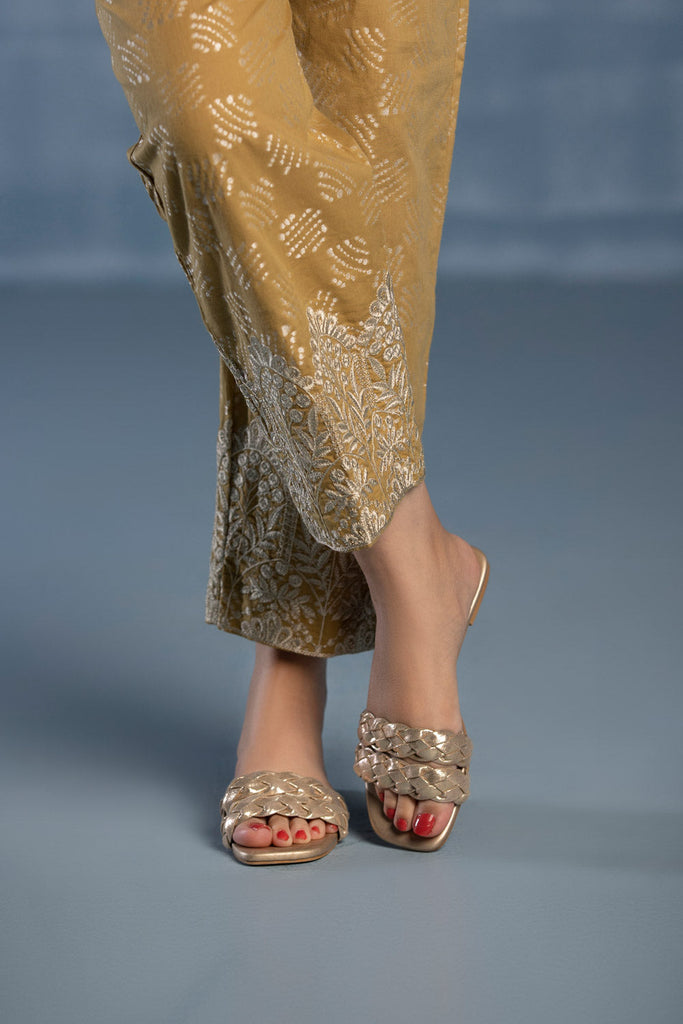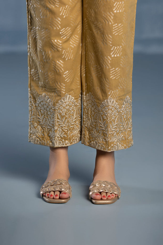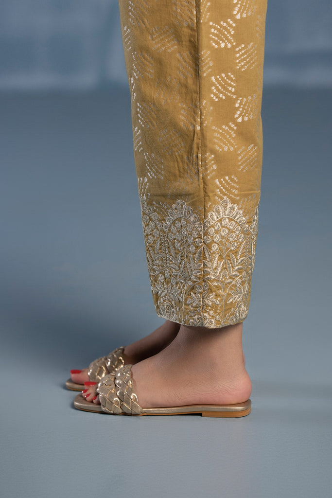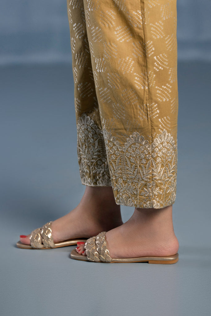 Straight Pants Complete your look with this peanut hued jacquard straight fit trouser with accented hem.