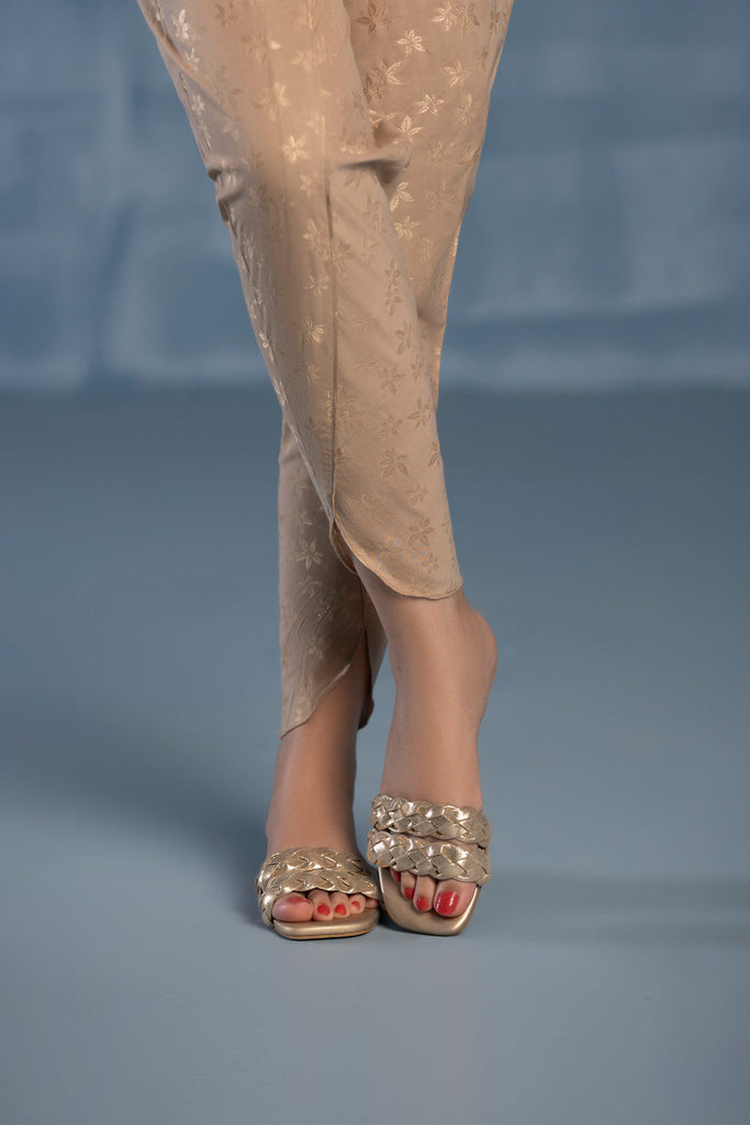 Adorn this crisp jacquard tulip shalwar in peanut hue for elevated look.