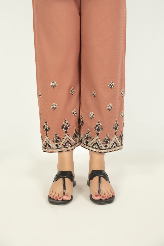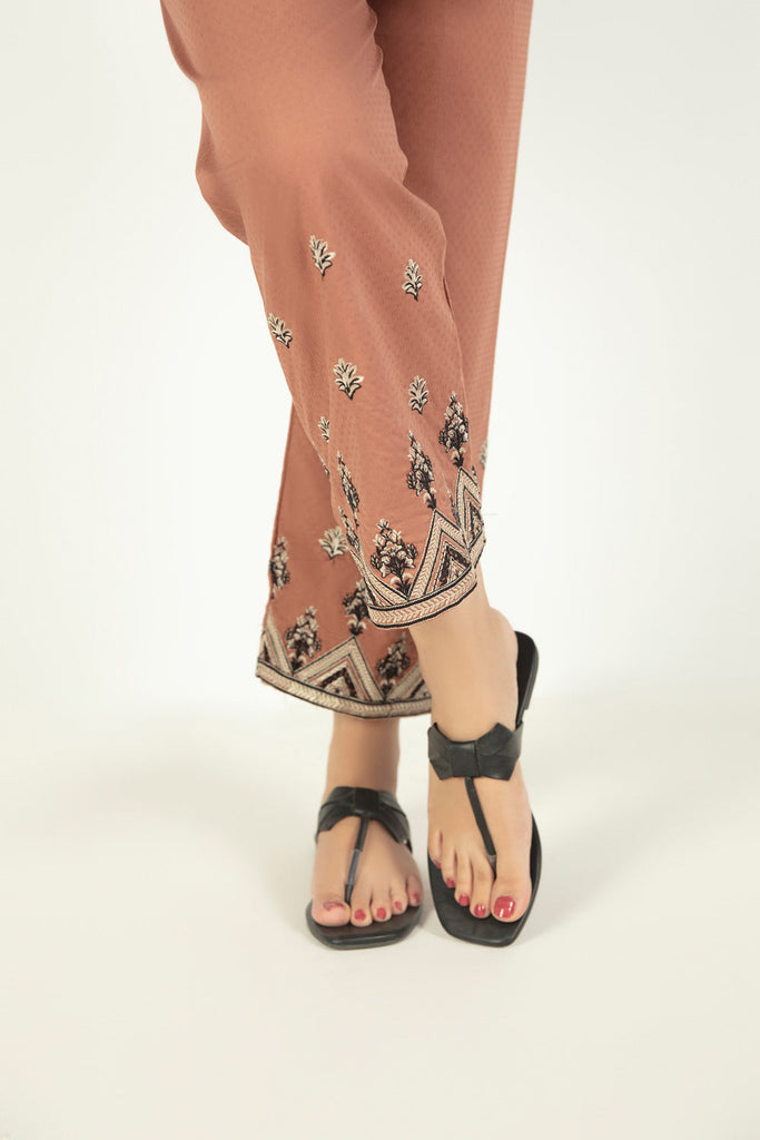Complete your style with these embroidered straight cotton trousers, enriched with warm hues of brown.