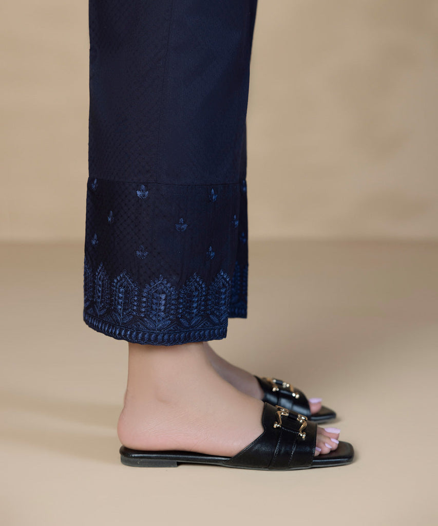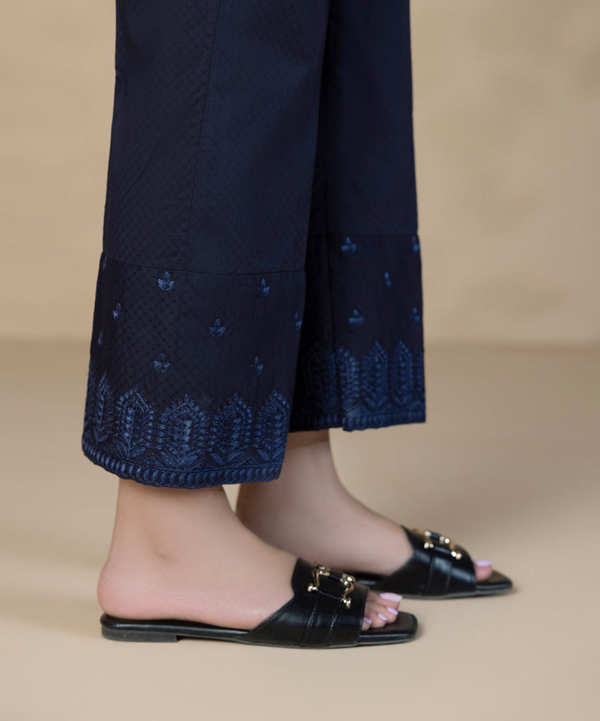 Straight Pant Complete your outfit with this navy cotton straight trouser featuring an embroidered hem. Details: Col...