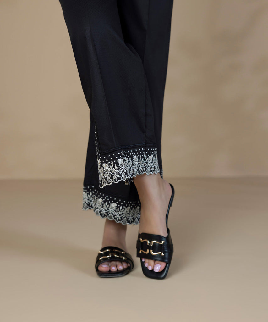 Culottes Complete your outfit with this black embroidered culottes. Details: Colour: Black Fabric: Textured Cotton S...