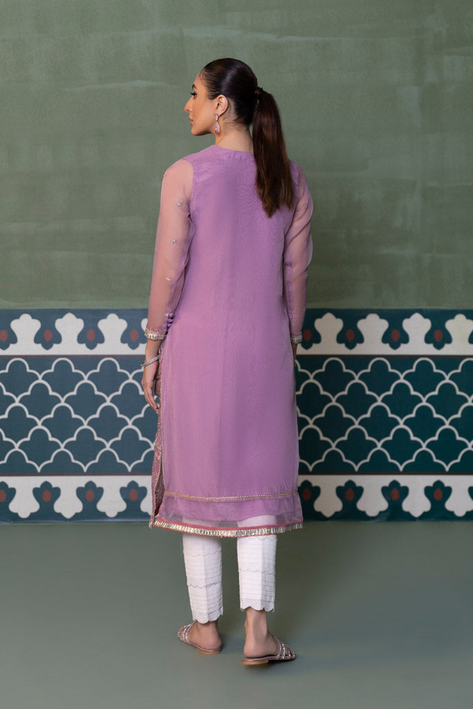 A Line Shirt Adorn lilac hues with this embroidered organza A line silhouette with embroidered front. Details: Emb...