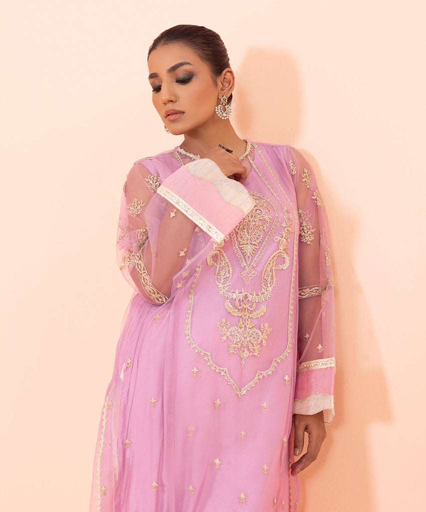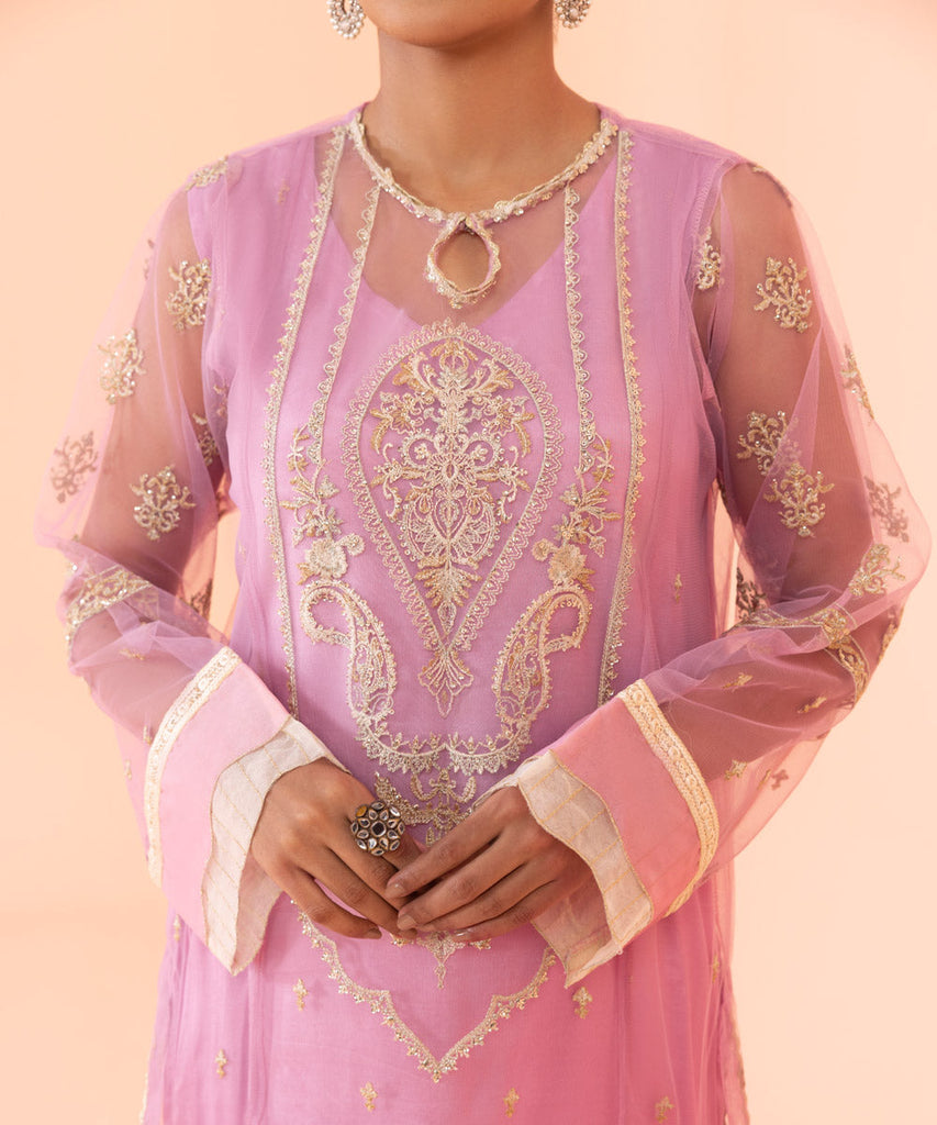 Strut in style in our tea pink straight silhouette elevated with intricate embroidery and a keyhole neckline.