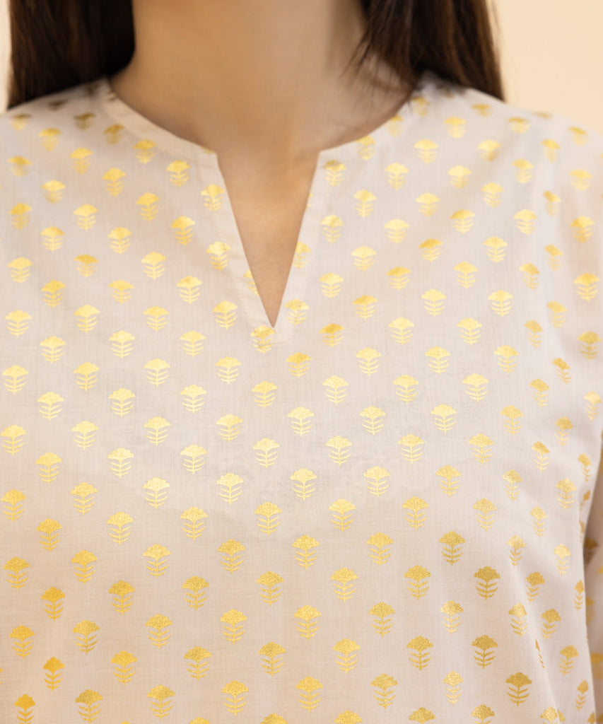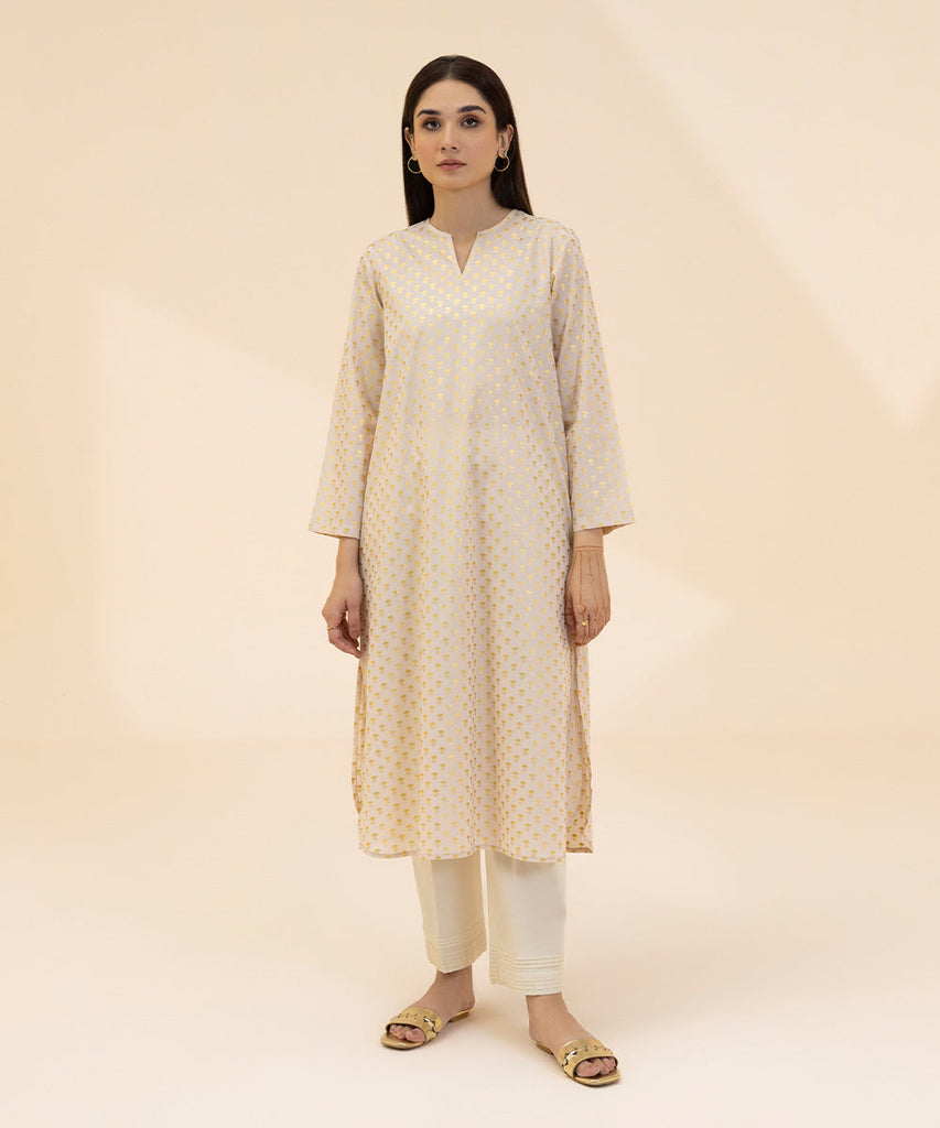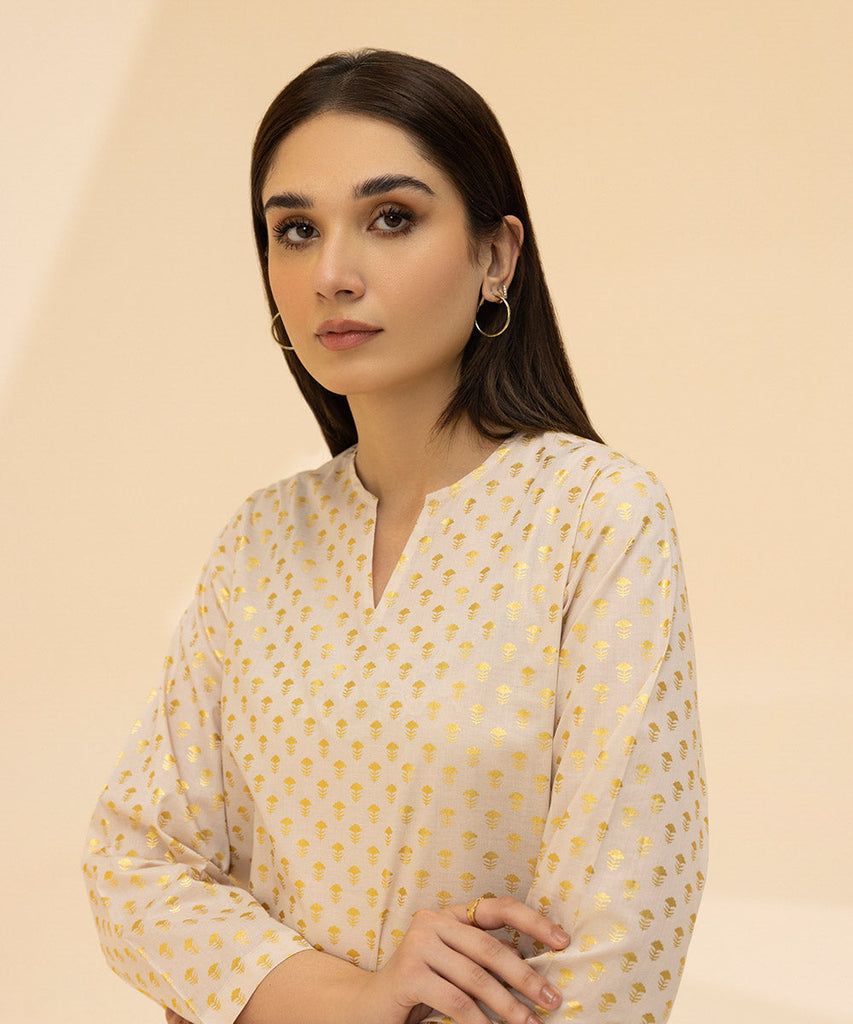 Straight Kurta Strut in style in our beige foil printed straight kurta.