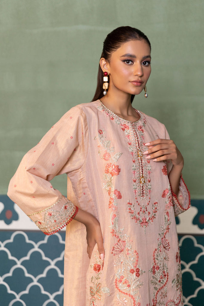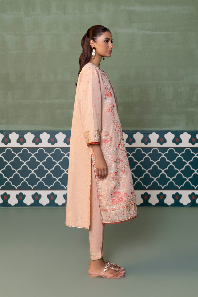 2-Piece A Line Shirt with Cigarette Pants Revamp your wardrobe with this masoori net A line ensemble in peach featuri...