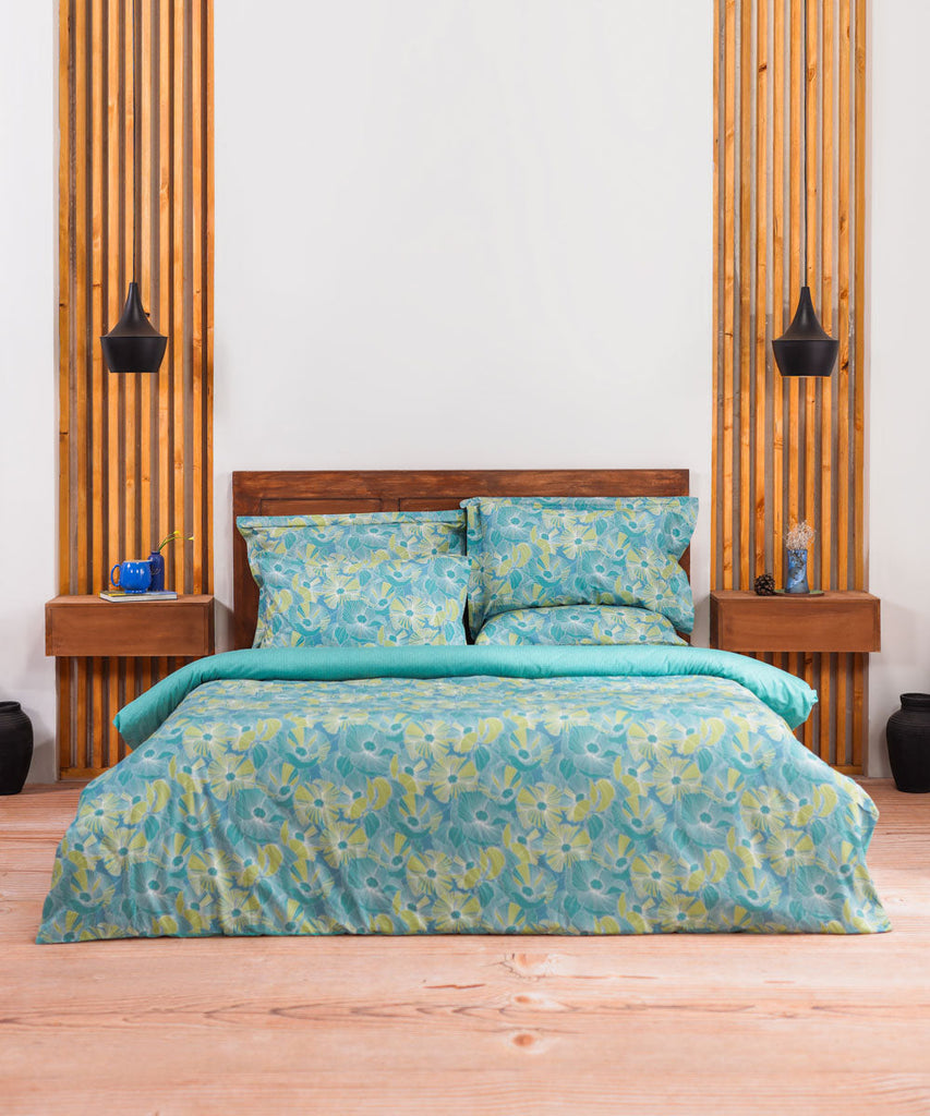 Refresh your space with our lotus floral printed bed in a bag reversing to geometrical print.