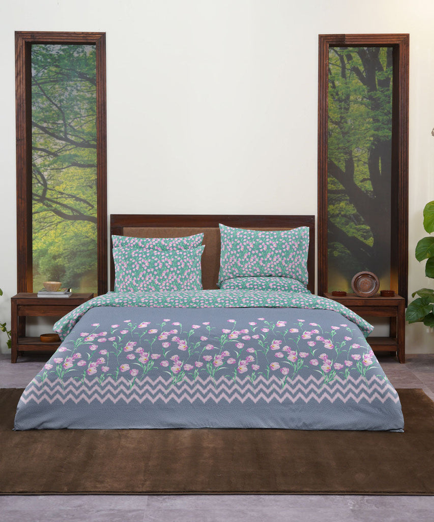 Refresh your spring space with our multicoloured, 100% cotton sateen bed in a bag, illustrated with blooming tulips.