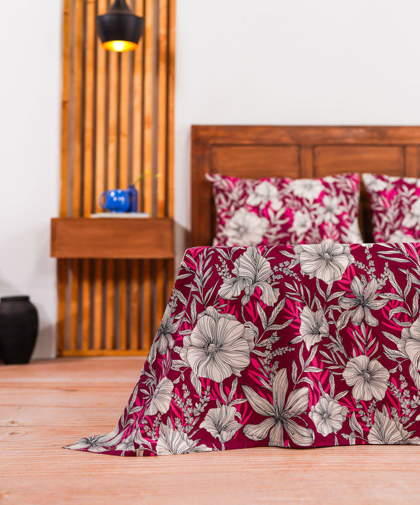Refresh your space with our oversized floral printed bed sheet reversing to all over print.