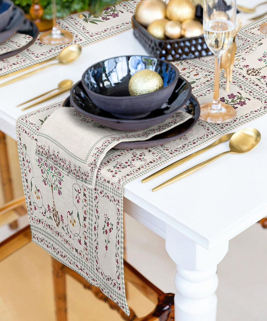 This Ramadan make your tablespaces more welcoming with our digital printed sage and beige table runner.