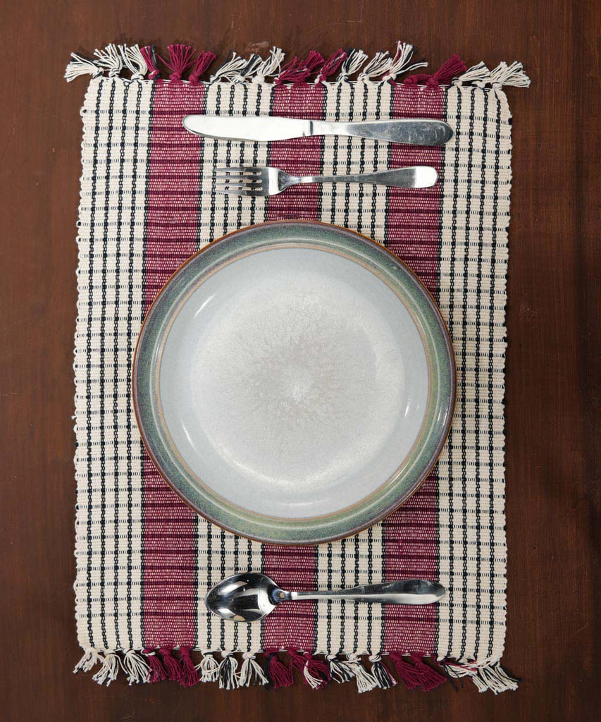 Enhance your dining moments and celebrate love with our maroon and beige, woven placemats.