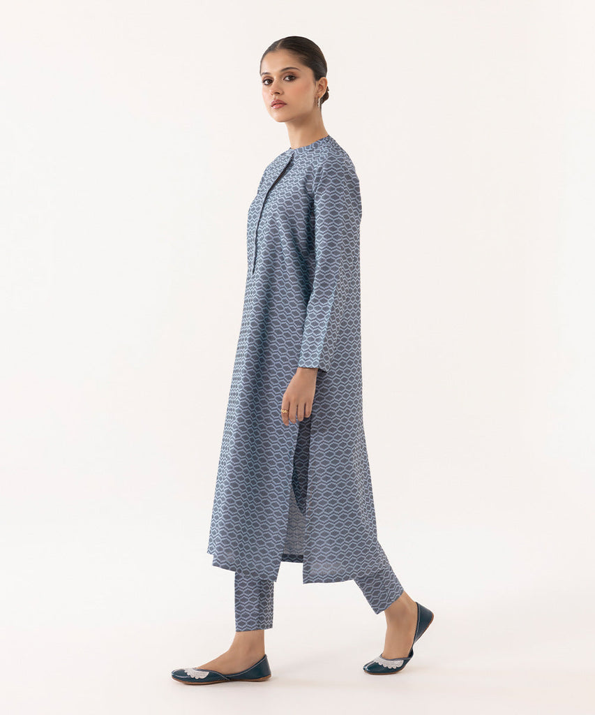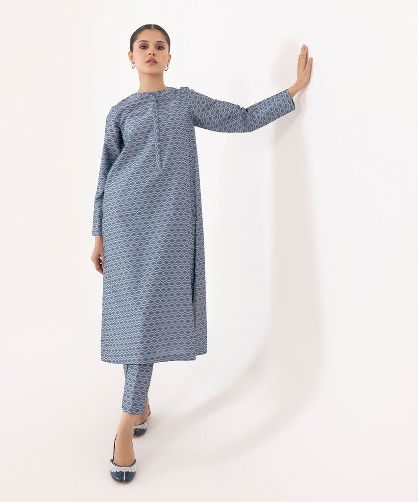2-Piece Straight Kurta with Trousers For a timeless appeal, adorn our grey jacquard straight paired with straight pan...