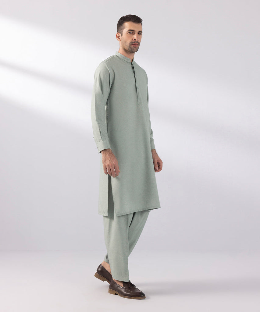 Leave a lasting impression this spring in our fern fancy wash & wear straight kurta paired with shalwar.