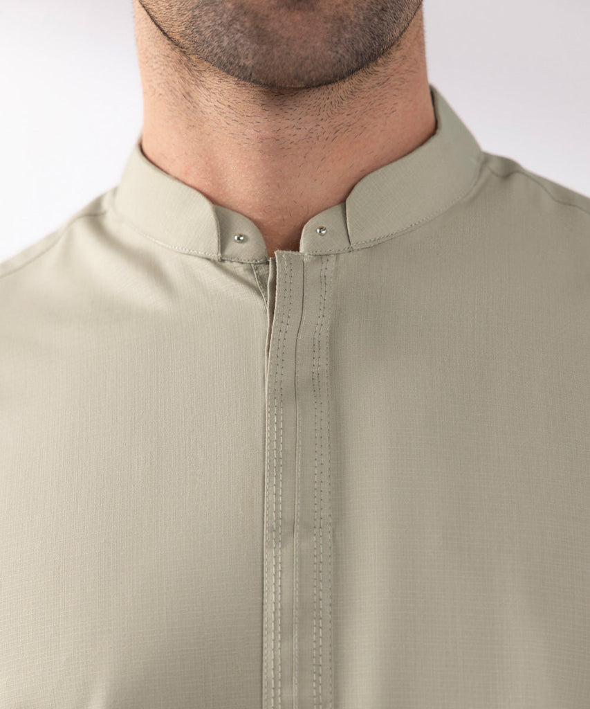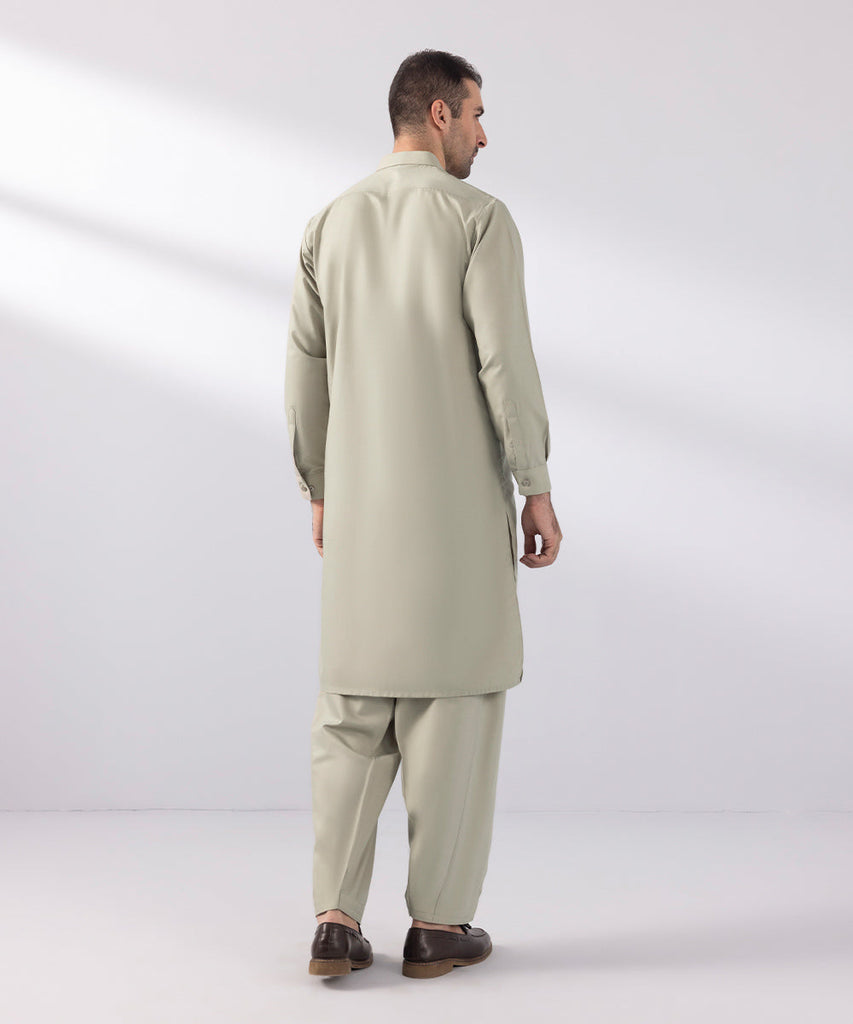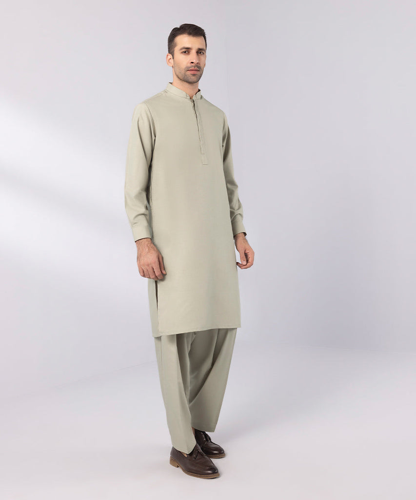 Create a traditional look this season in our khaki premium wash & wear straight kurta paired with shalwar.