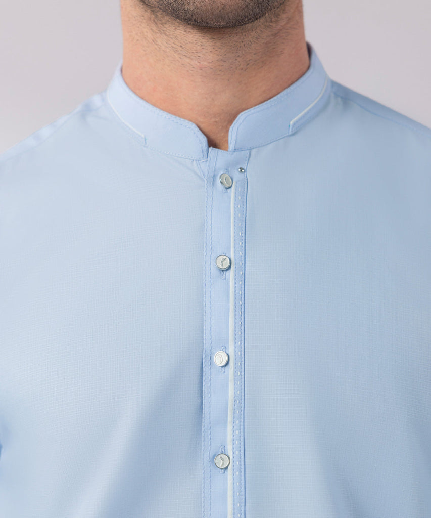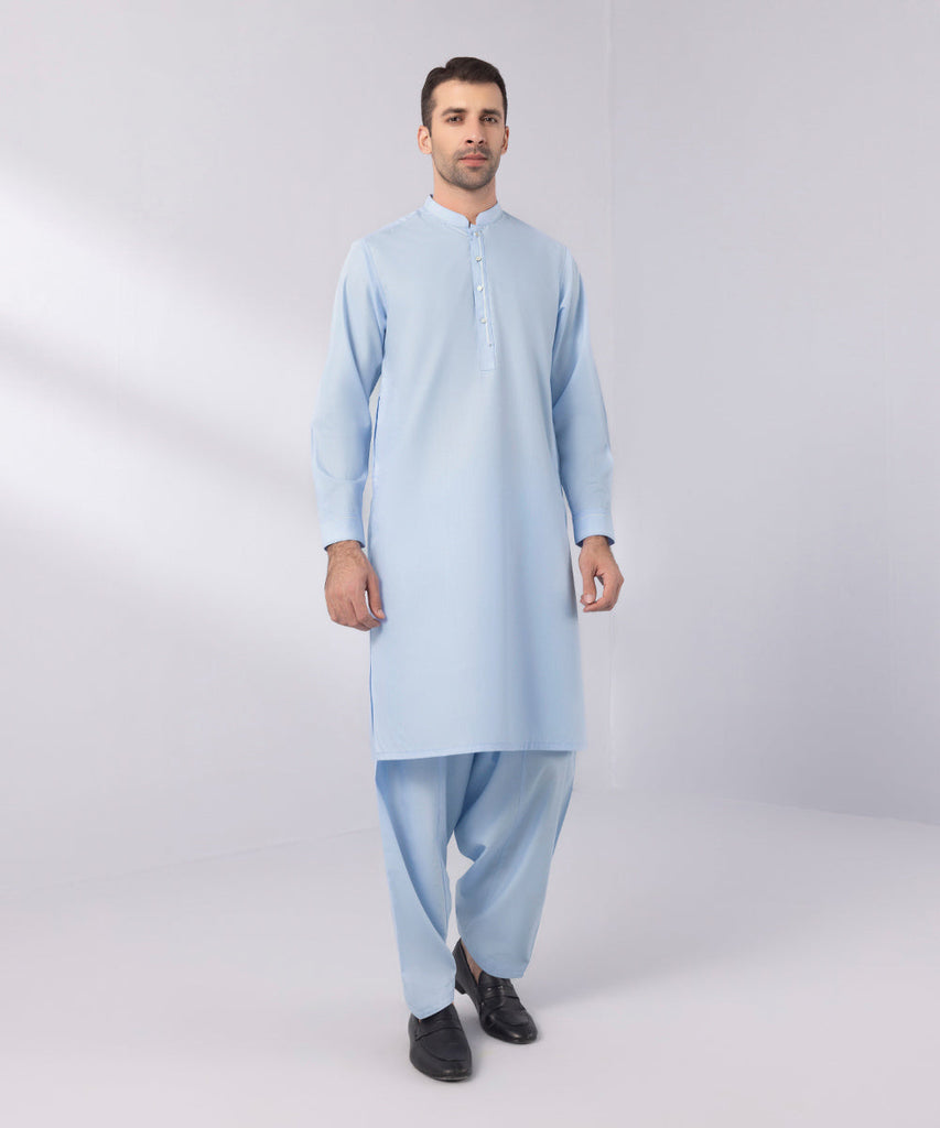 Make a dapper statement this season in our sky blue premium wash & wear straight kurta paired with shalwar.