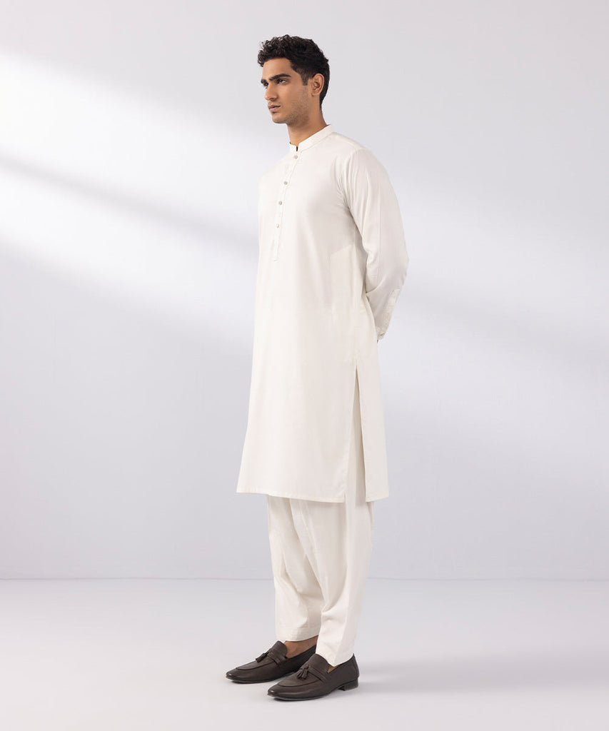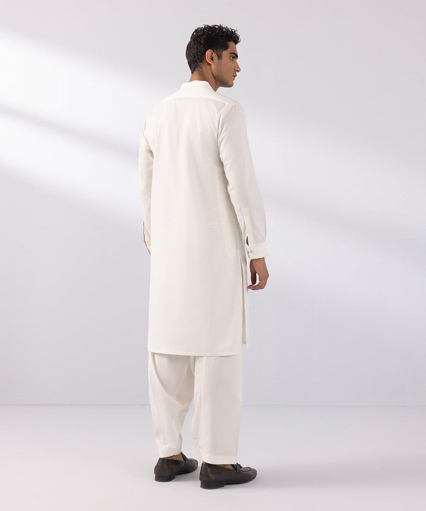 Elevate your everyday style in our off-white cotton dobby straight kurta and shalwar.