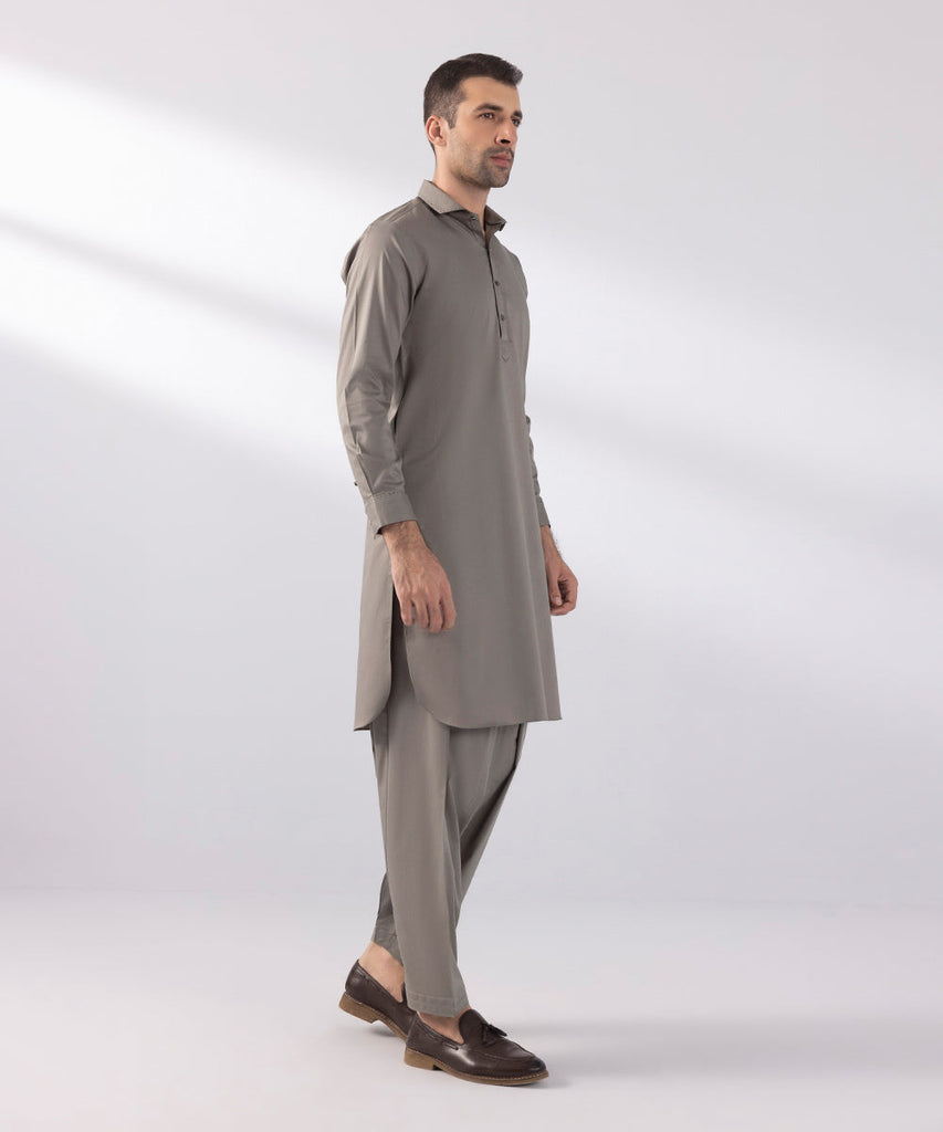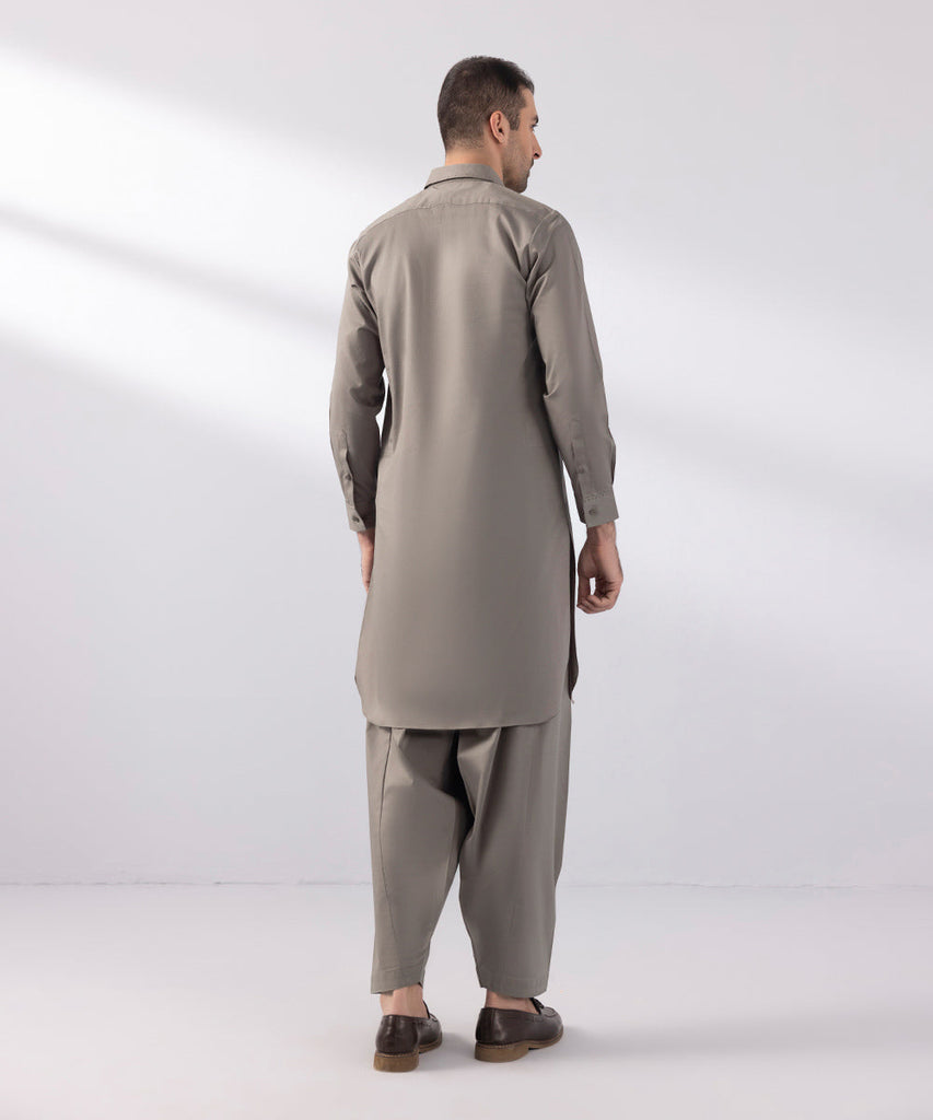 Elevate your everyday style in our mauve cotton dobby round hem kurta and shalwar.
