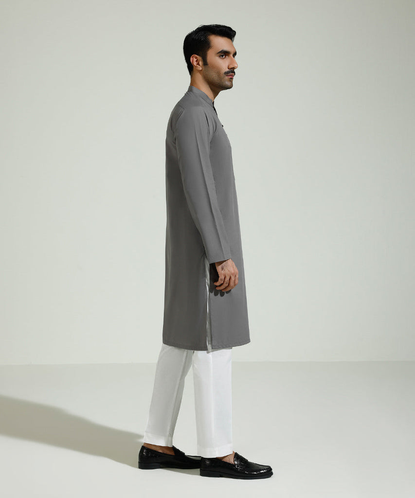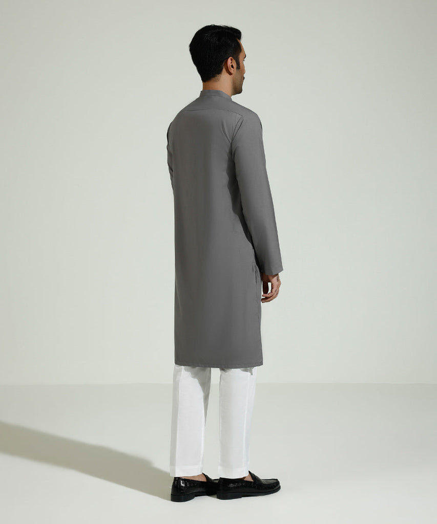 Style yourself in grey summer wash & wear kurta featuring detailing on band.