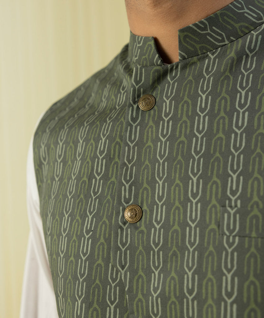 Uplift your attire with our forest green chain digital printed waistcoat.