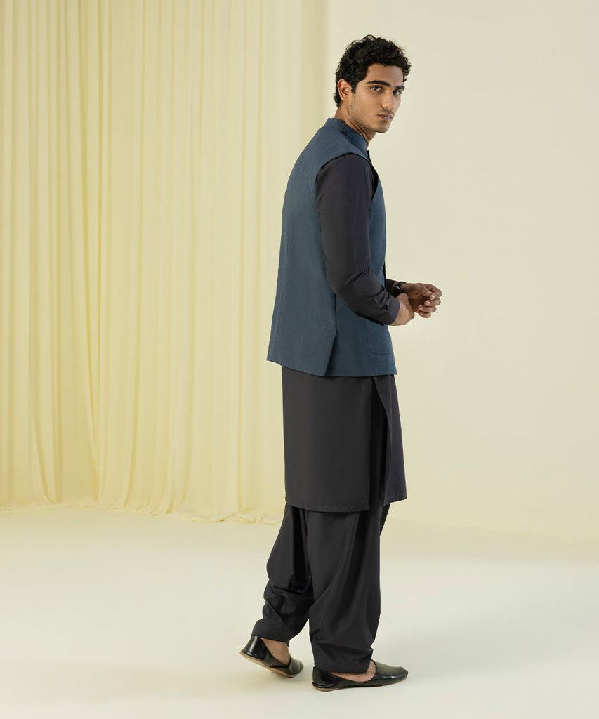 WaistcoatFor a crisp appearance don this dark blue mélange waistcoat with patch pockets. Details: Plain Front, Plain ...