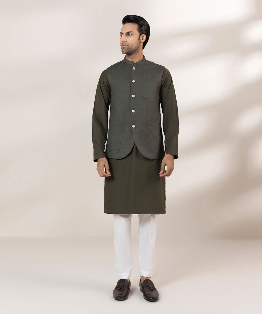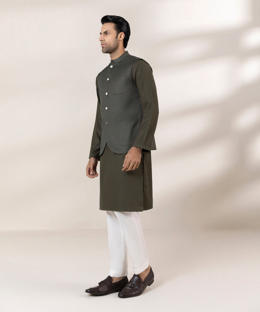 Waist Coat Elevate your outfit with our dark brown waistcoat. Details: Plain Front, Plain Back, Band Neckline Colour:...