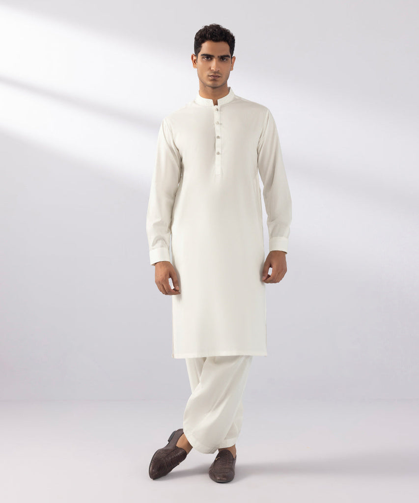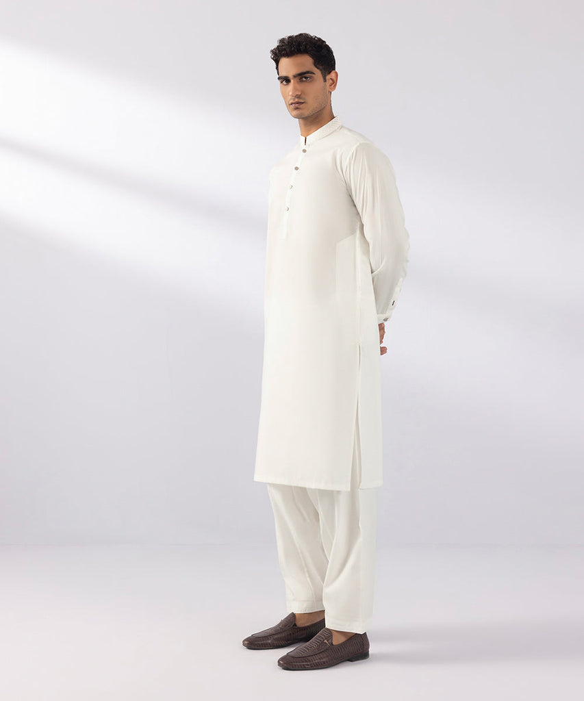 Make a dapper statement with our white Egyptian cotton kurta shalwar.