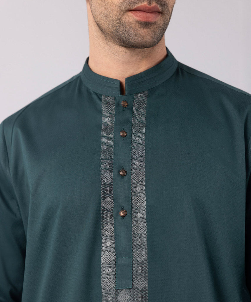 Embroidered Front, Plain Back, Full Sleeves with Cuff, Band Neckline