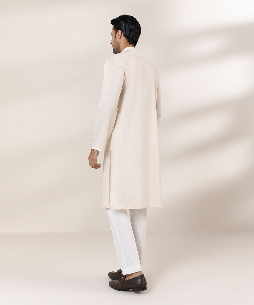 Embroidered Front, Plain Back, Full Sleeves, Band Neckline