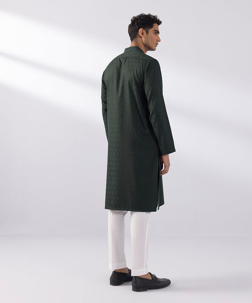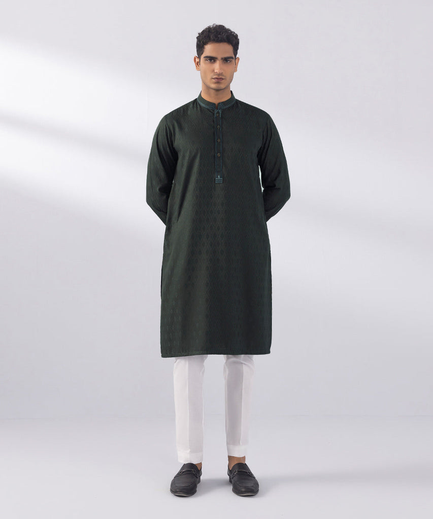 Embroidered Front, Plain Back, Full Sleeves, Band Neckline