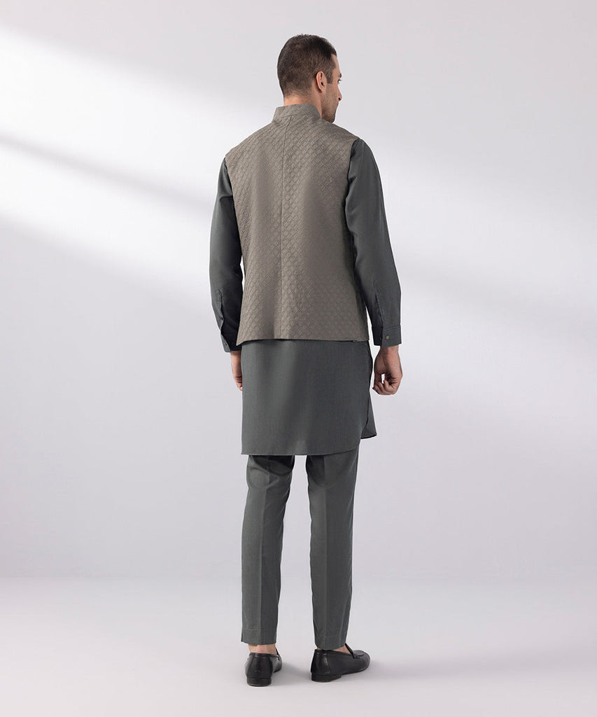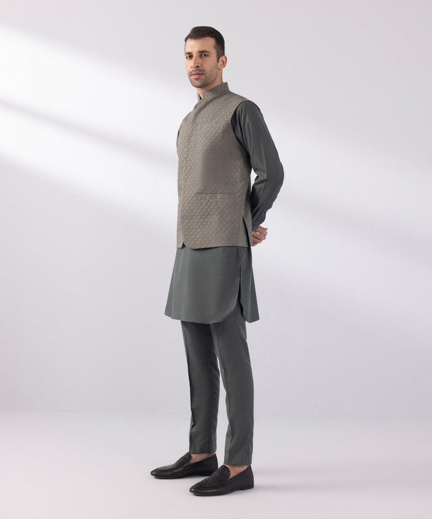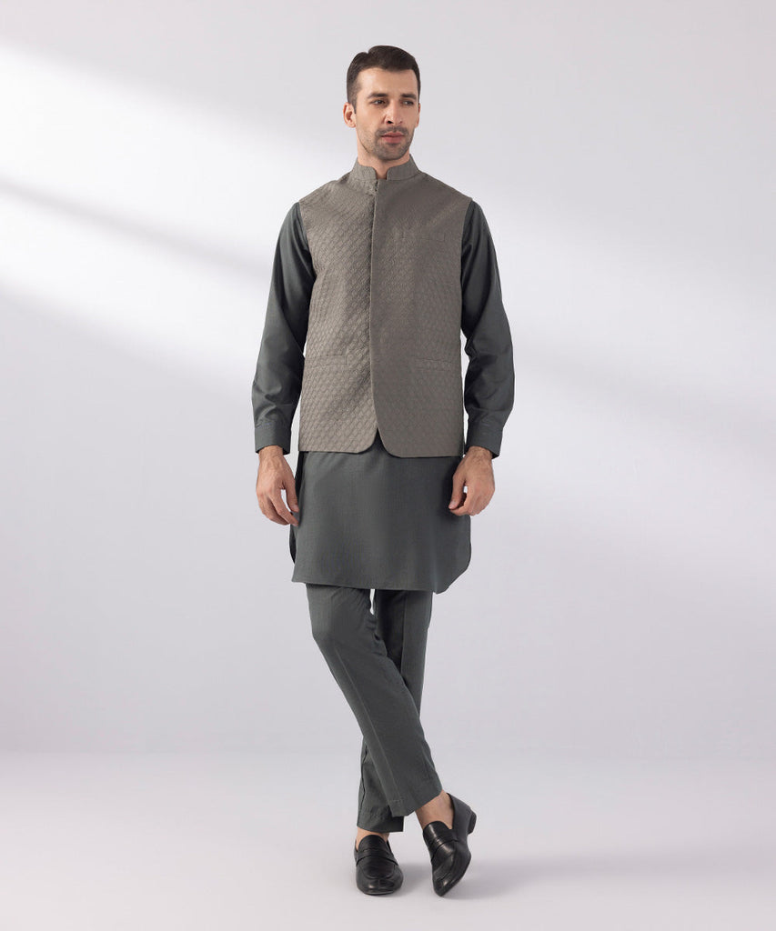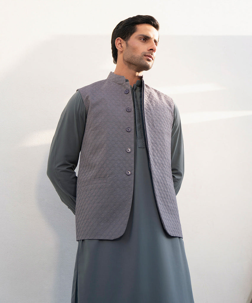 Waist CoatMake heads turn this festive season with our schiffli embroidered grey waistcoat. Details: Plain Front, Pla...