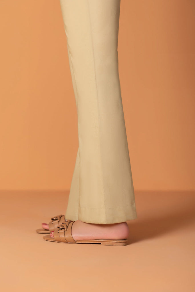 Add flair to your outfit with this neatly stitched beige bootcut pants in cambric.