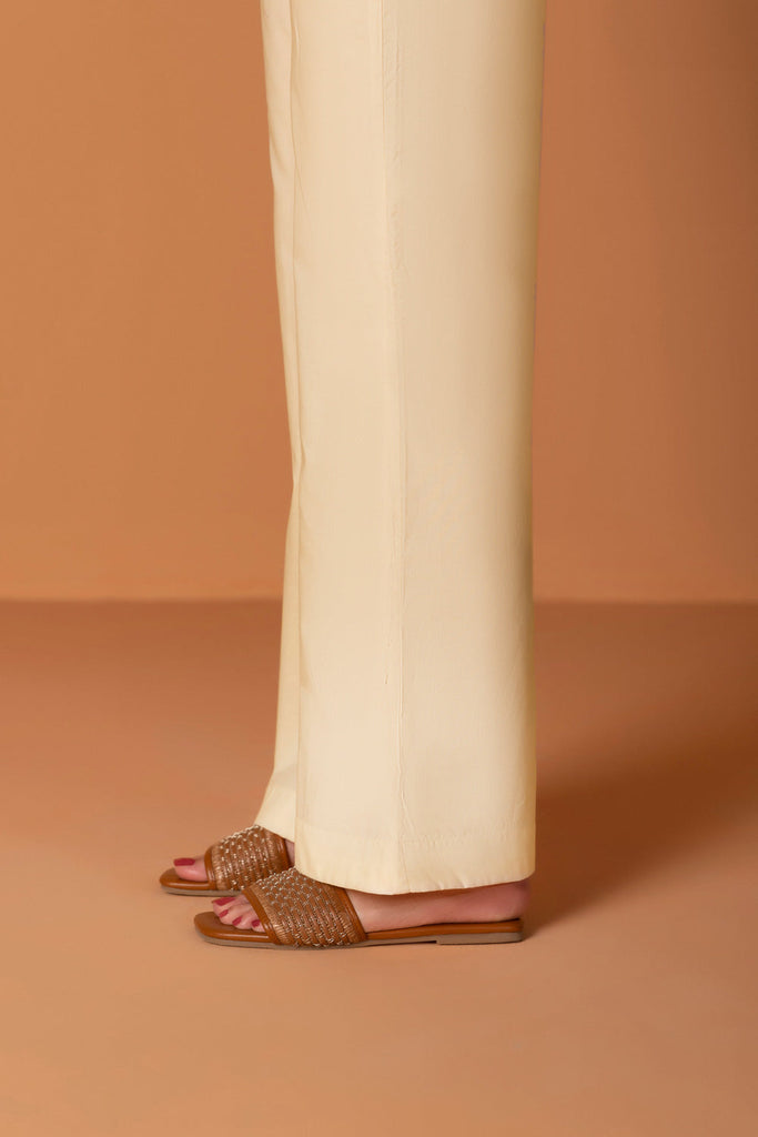 Elevate your outfit with this neatly stitched off white bootcut pants in cambric.