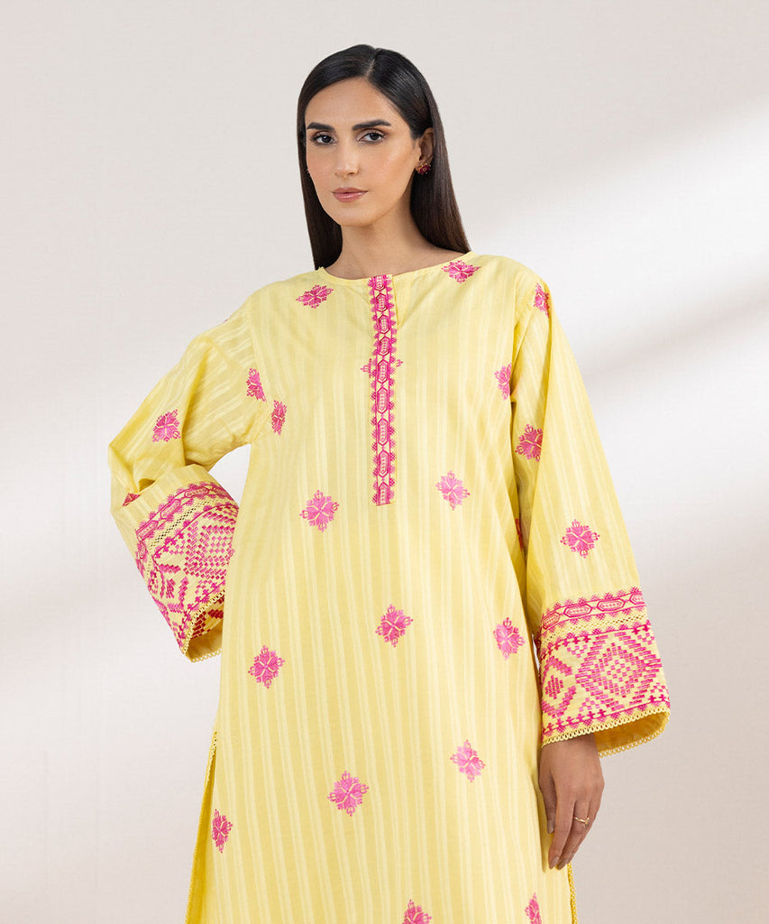 Boxy ShirtFor a chic festive look style our bright yellow, long boxy dobby shirt decorated with embroidery. Details: ...