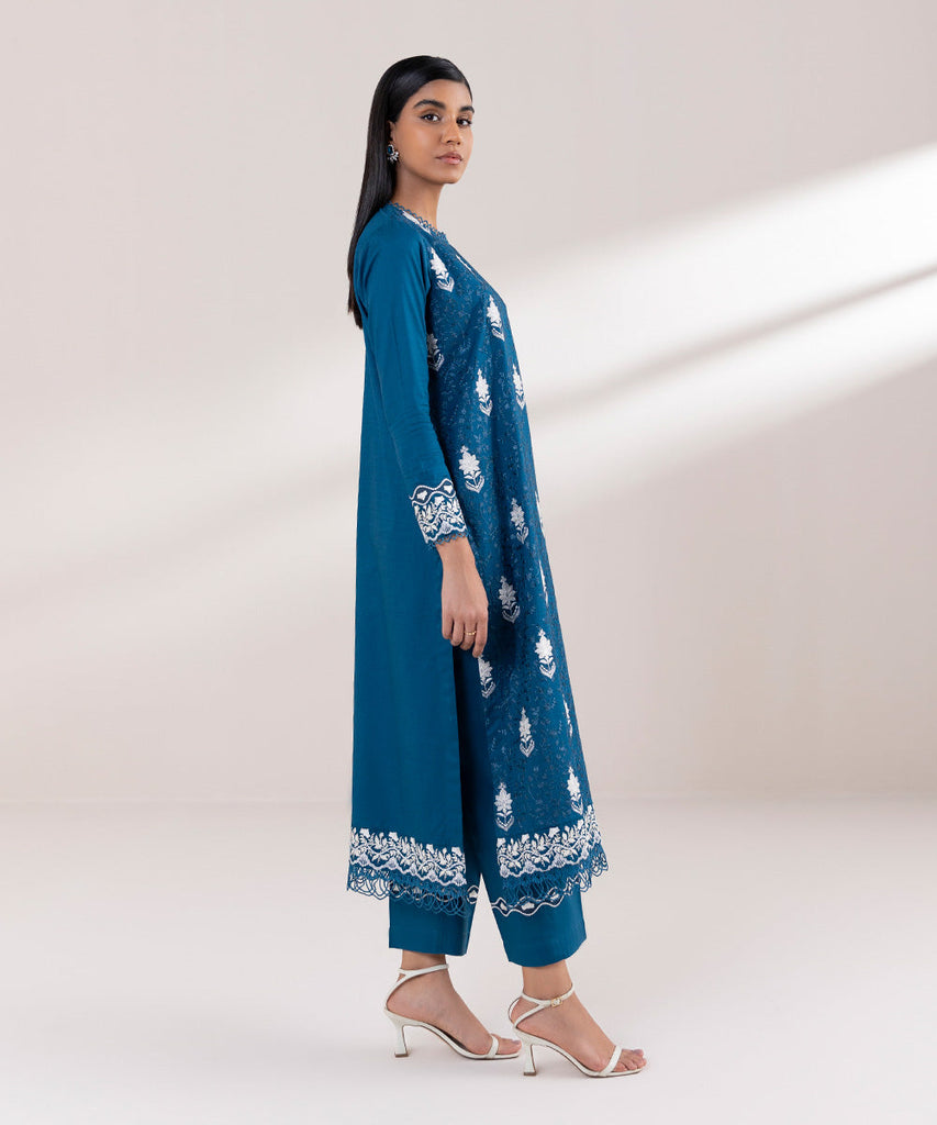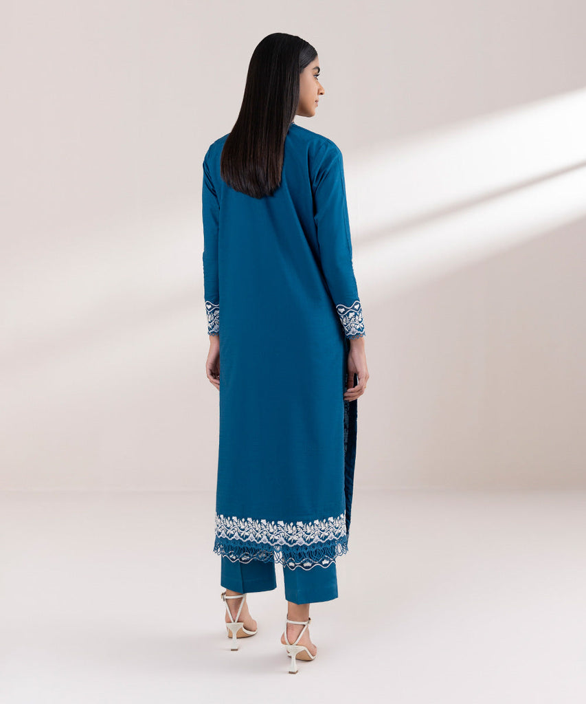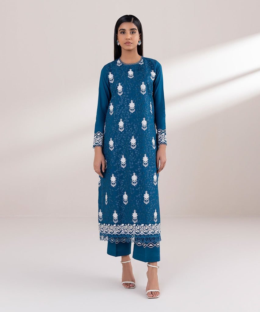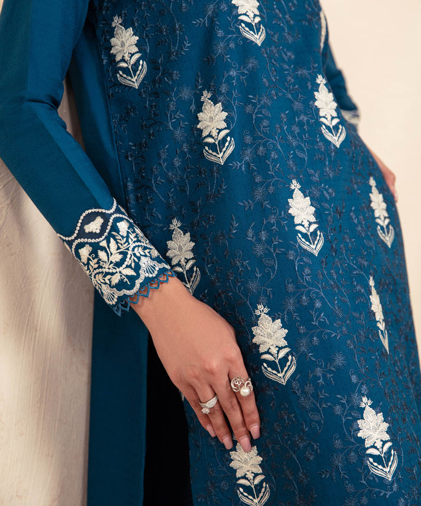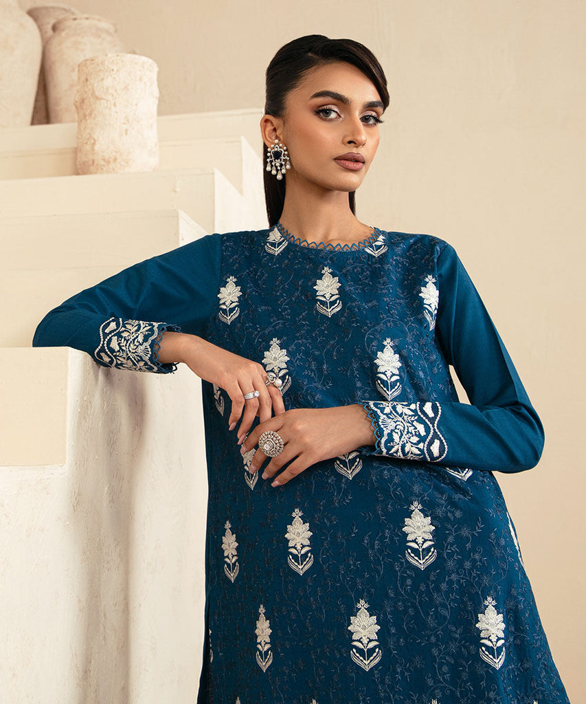 A-Line ShirtElevate your festive style with our teal blue embroidered A-line shirt featuring a round neckline.