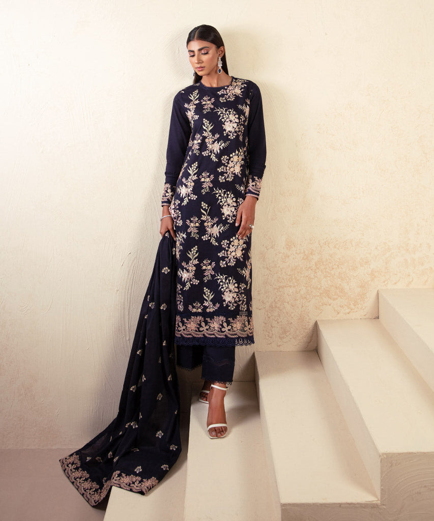 Dyed Front with Embroidery, Dyed Back with Embroidery, Full Sleeves, Round Neckline