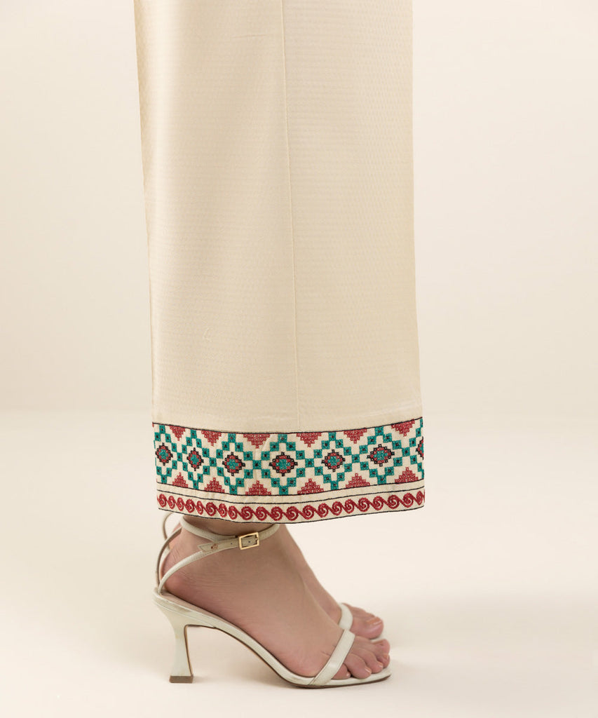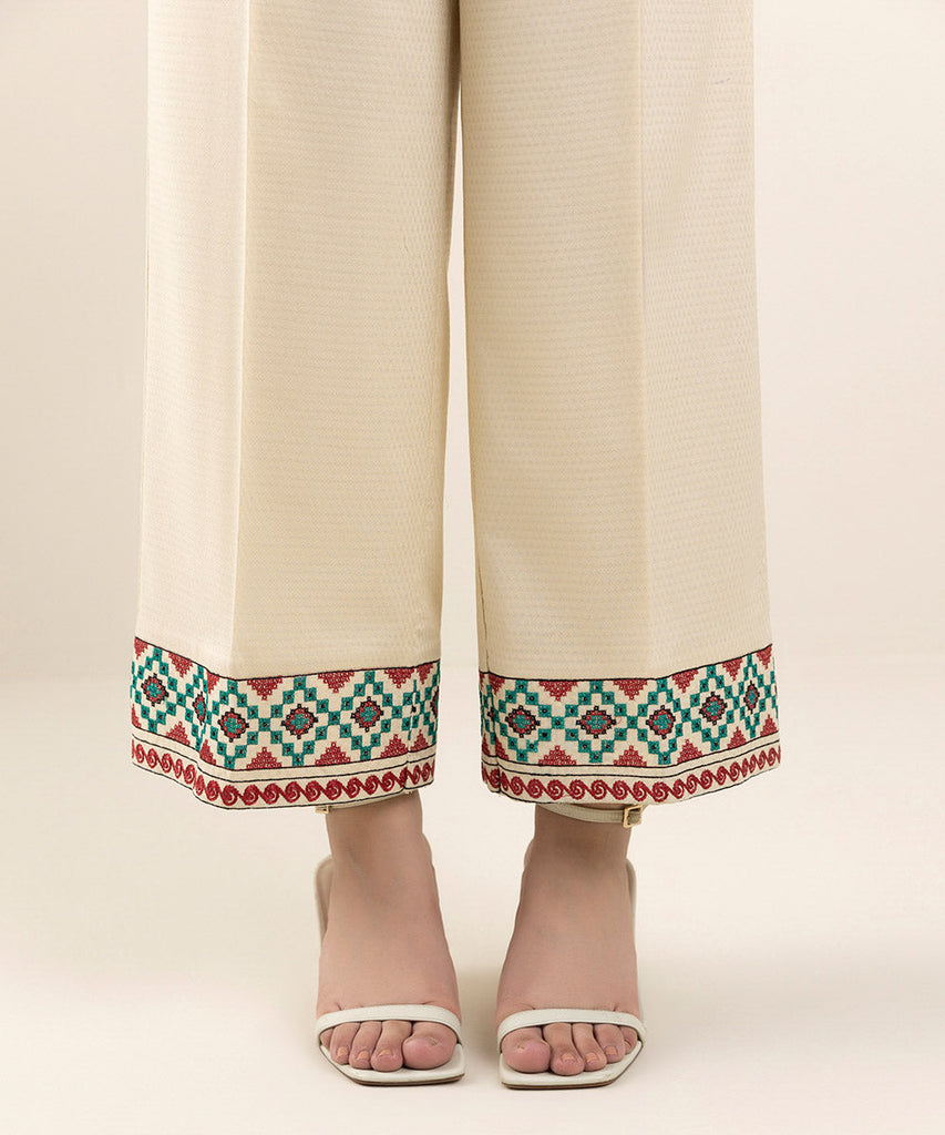 Complete your outfit wit our dyed off white embroidered culottes. CulottesColour: Off WhiteFabric: Dobby SIZE & F...