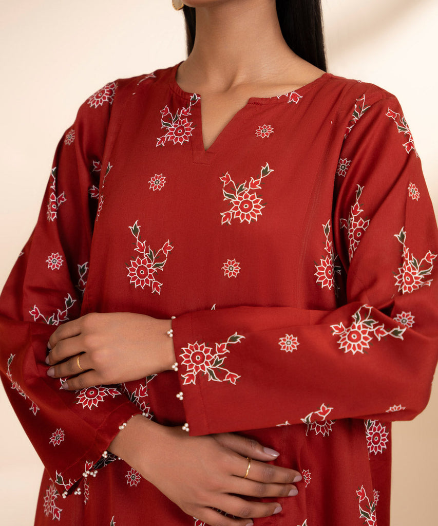 Printed Front, Printed Back, Full Sleeves, Round Neckline with a slit