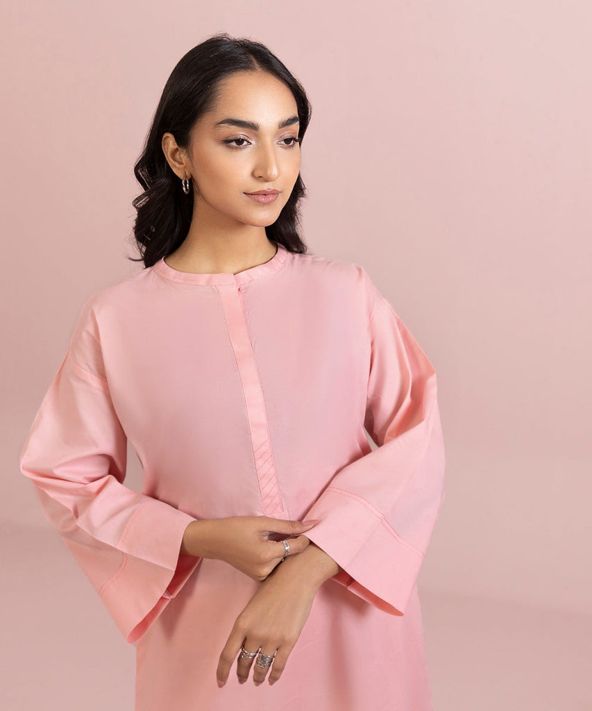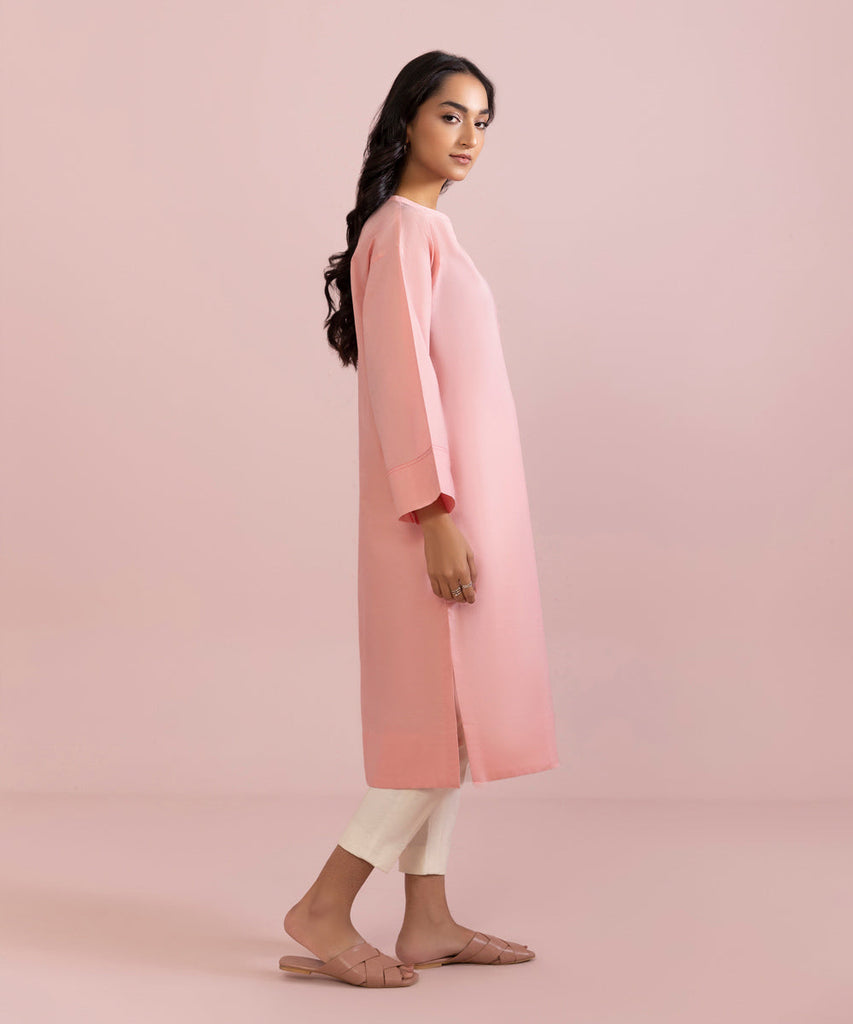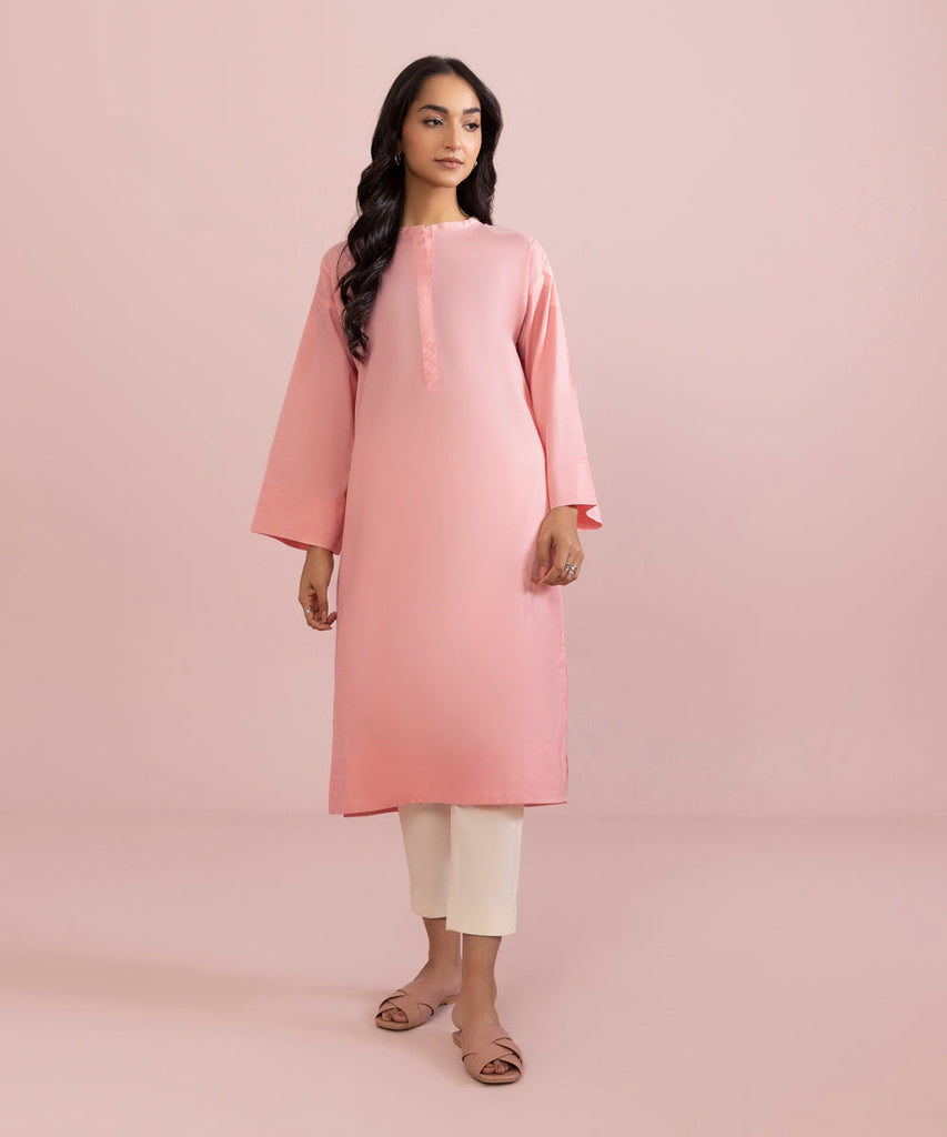 Straight Kurta Upgrade your solids with this pink straight silhouette featuring a round neckline. Details: Plain Fro...