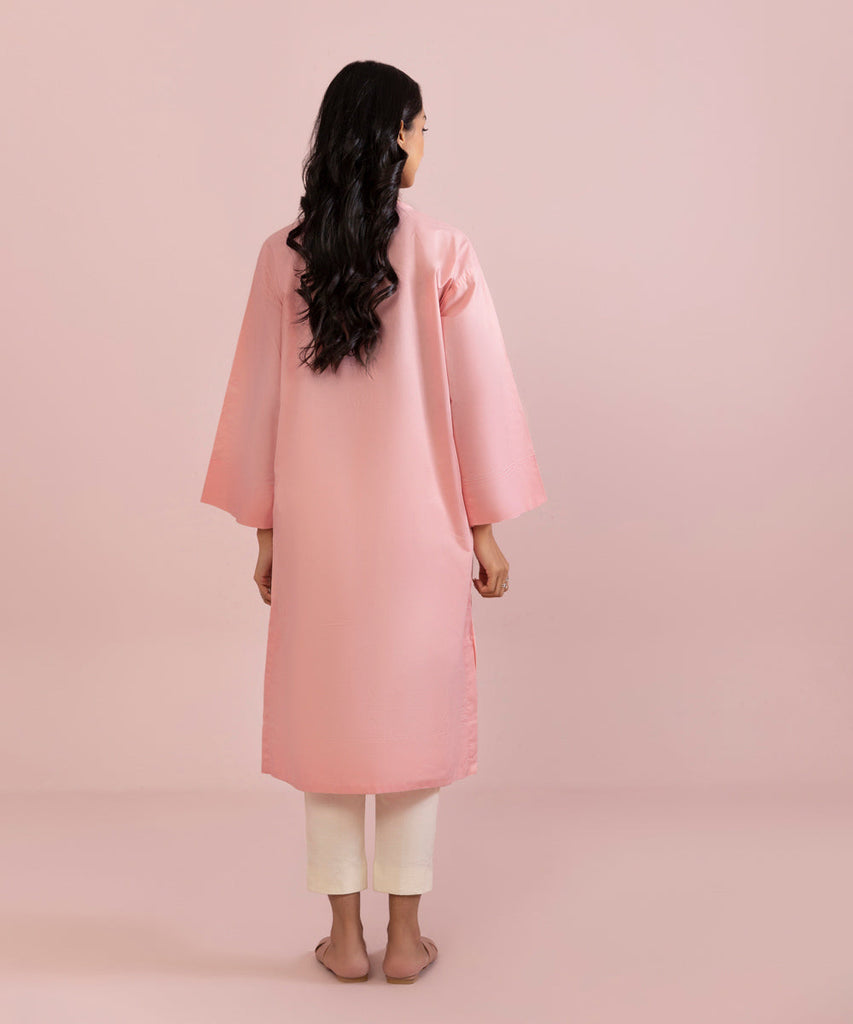 Plain Front, Plain Back, Full Sleeves, Round Neckline With Placket