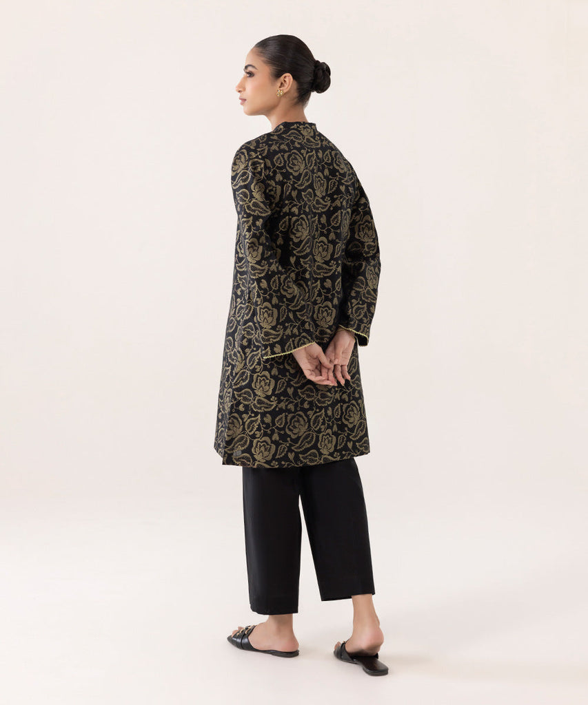 Refresh your summer wardrobe with our finest jacquard collection featuring a straight silhouette imbued on a black canvas.