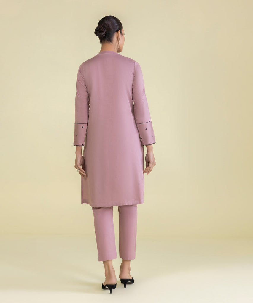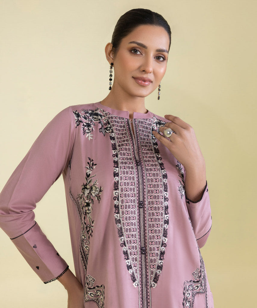 Embroidered Front, Plain Back, Full Sleeves With Embroidered Border, Band Neck With Slit