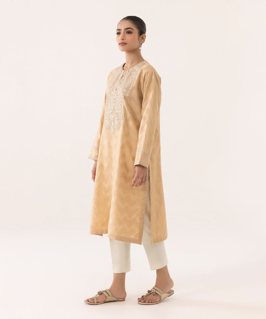 Dyed Embroidered Front, Dyed Plain Back, Full Sleeves, Crew Neckline With Slit
