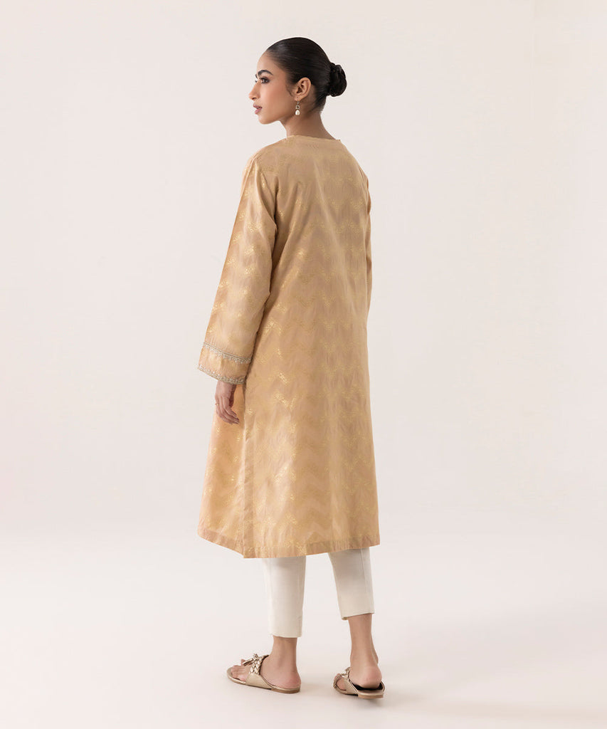 Our pink straight jacquard ensemble is designed with meticulous attention to detail, exuding an aura of elegance and timeless charm.