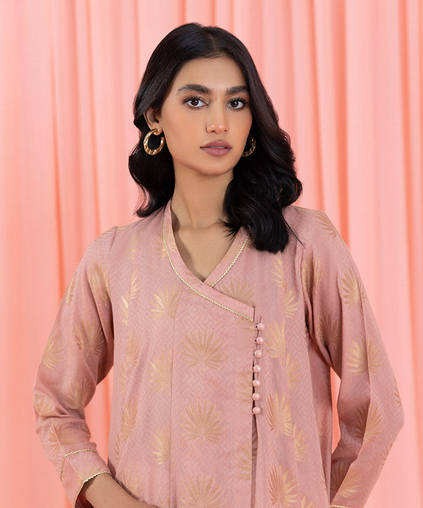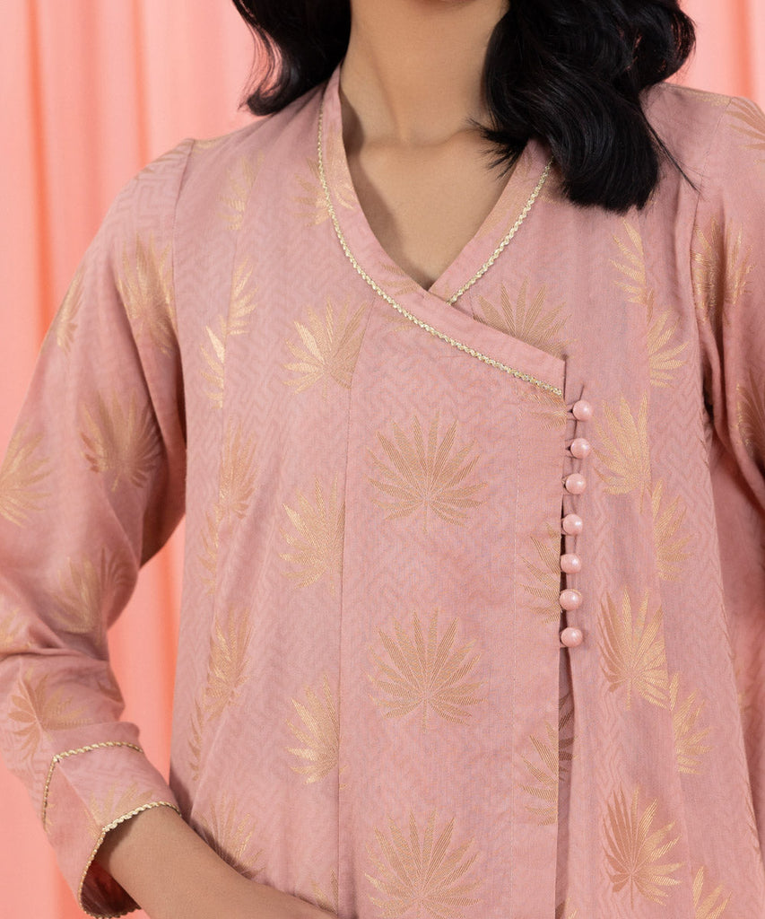 Flared A line Shirt This Eid, strut in style in peach flared A-line featuring intricate embroidery. Details: Plain F...