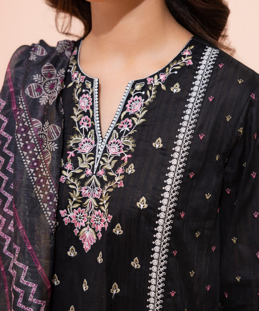 Dyed Embroidered Front, Dyed Plain Back, Full Sleeves, Round Neckline With Slit
