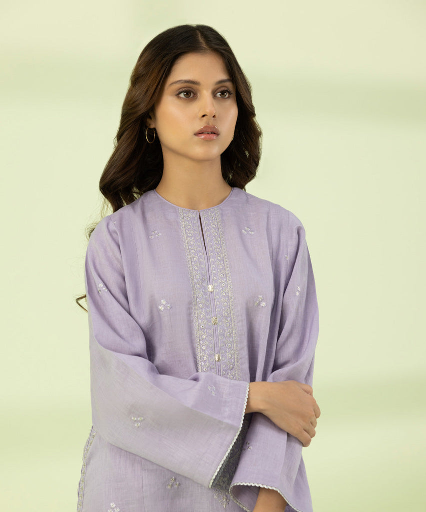 A line Shirt For a summer look, don a purple A-line with intricate embroidery. Details: Plain Front With Embroidery,...